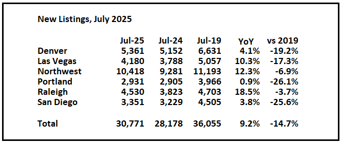 Last month, new listings in these markets were up 7.7% year-over-year.