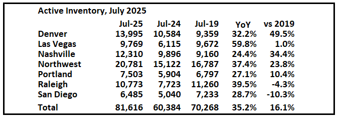 Comparing to July 2019, inventory is up sharply in Denver and down in San Diego. There are significant regional differences in inventory.