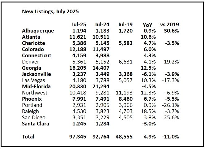 New listings are up solidly year-over-year, but down 11.0% compared to July 2019 activity.
