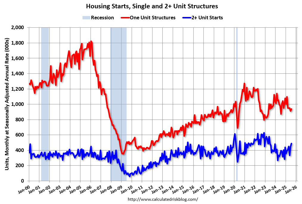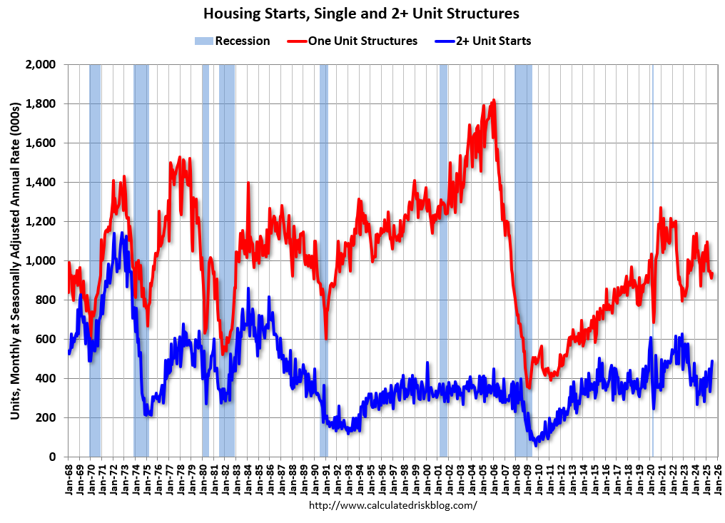 The first graph shows single and multi-family housing starts since 2000 (including housing bubble).