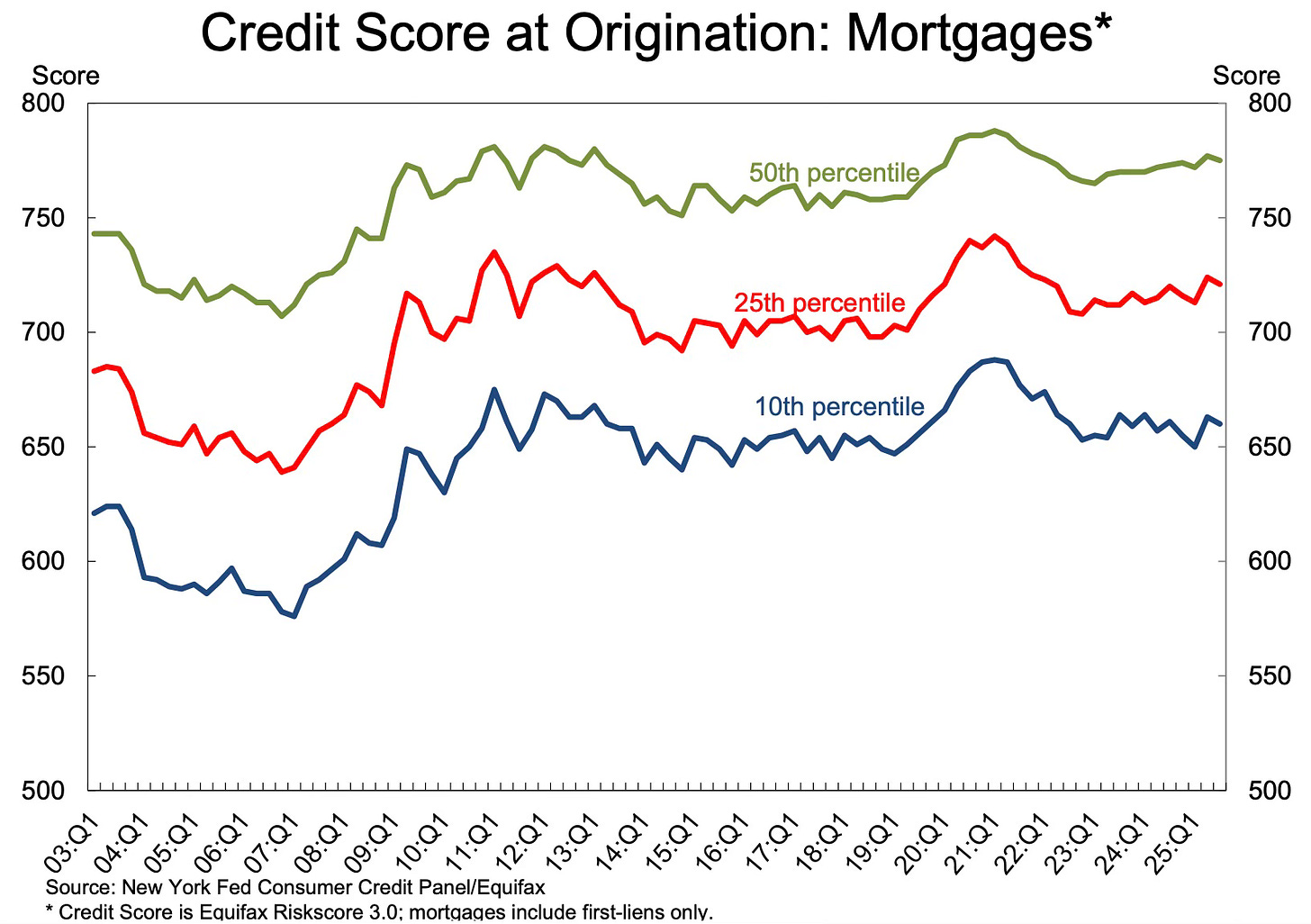Here is another way to look at the credit scores by origination over time. There was a significant decline in credit scores during the bubble.
