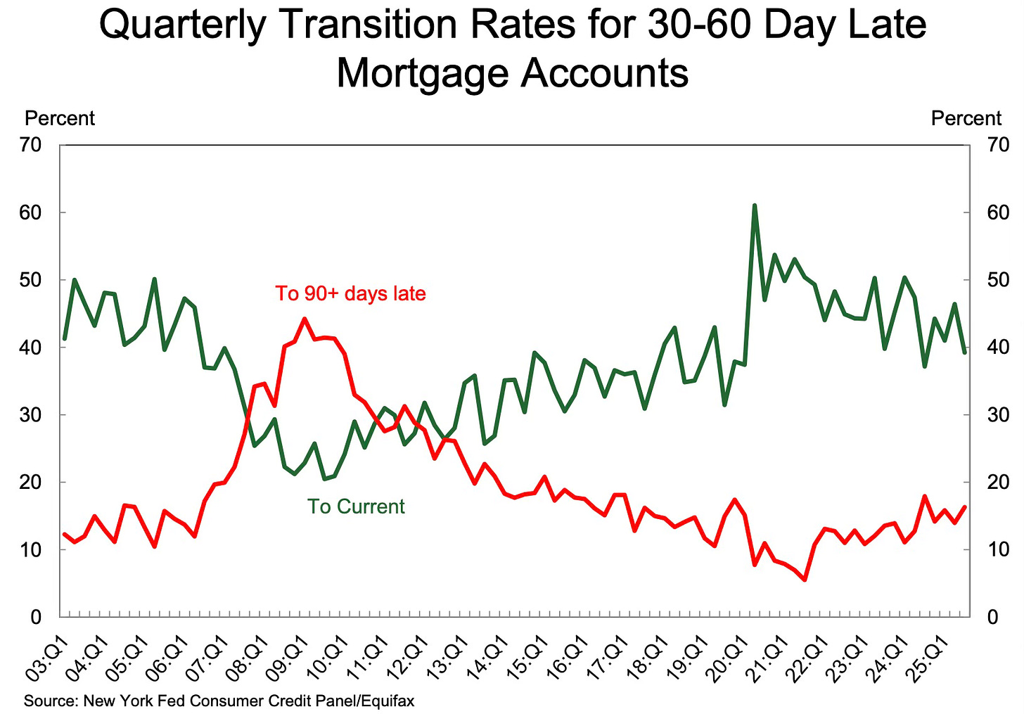 And here is the transition to serious delinquencies. Most short-term delinquencies transition back to current. The transition to seriously delinquent (90+ days) increased in Q3 and is something to watch.